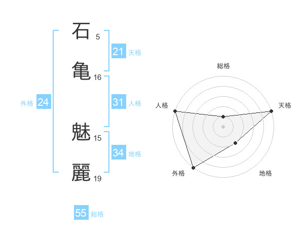 石亀 魅麗さんの総格は55画の1点!