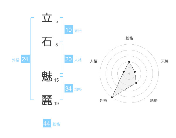 立石 魅麗さんの総格は44画の2点!