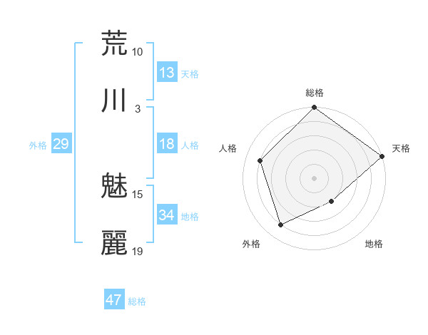 荒川 魅麗さんを姓名の画数から五運を鑑定