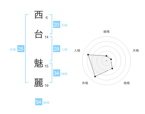 西台 魅麗さんを姓名の画数から五運を鑑定