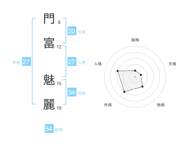 門富 魅麗さんの総格は54画の1点!