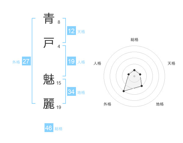 青戸 魅麗さんの天格は12画の1点!