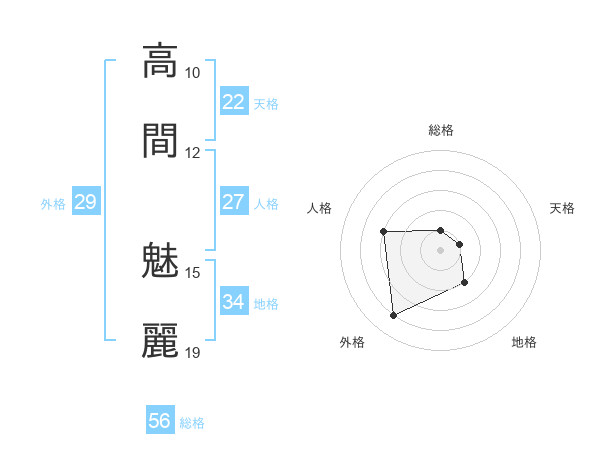 高間 魅麗さんを姓名の画数から五運を鑑定