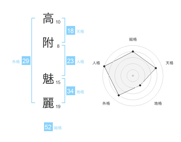 高附 魅麗さんを姓名の画数から五運を鑑定