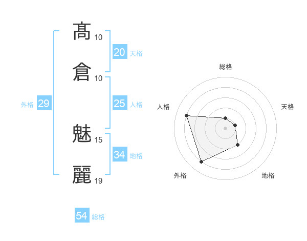 髙倉 魅麗さんの総格は54画の1点!