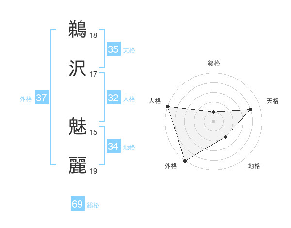 鵜沢 魅麗さんの外格は37画の5点!