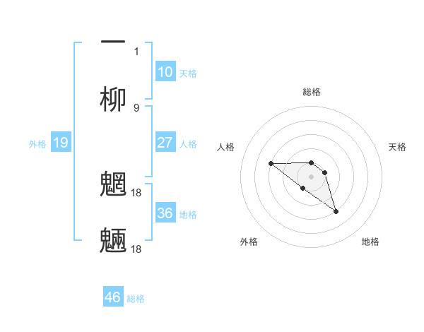 一柳 魍魎さんの総格は46画の1点!