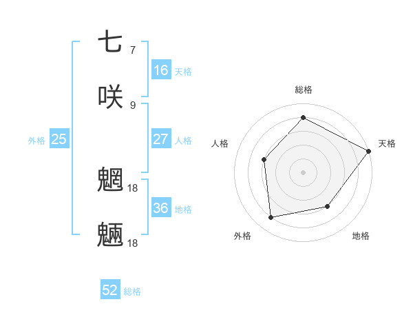 七咲 魍魎さんを姓名の画数から五運を鑑定