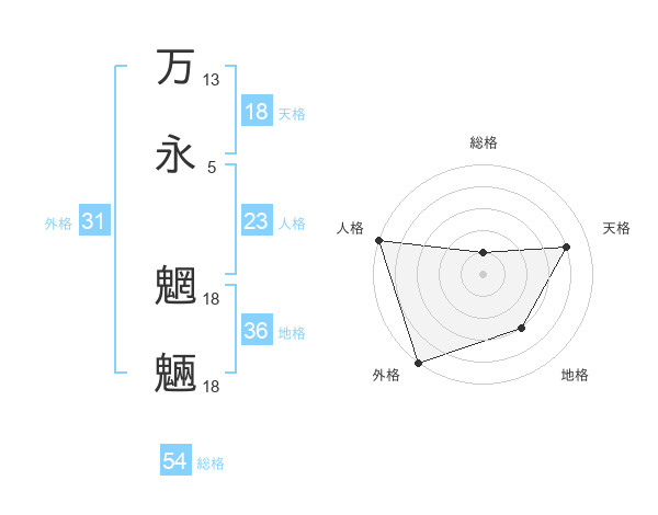 万永 魍魎さんの天格は18画の4点!