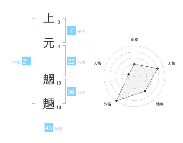 上元 魍魎さんの天格は7画の4点!