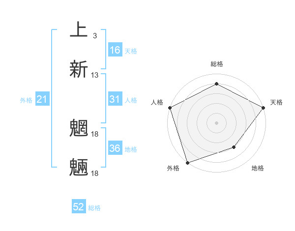 上新 魍魎さんの総格は52画の4点!