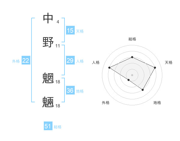 中野 魍魎さんを姓名の画数から五運を鑑定