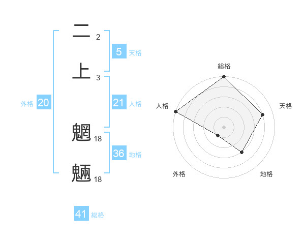 二上 魍魎さんの地格は36画の3点!