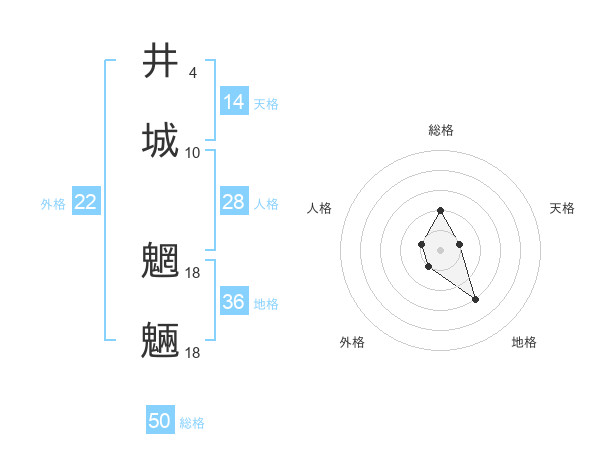 井城 魍魎さんを姓名の画数から五運を鑑定