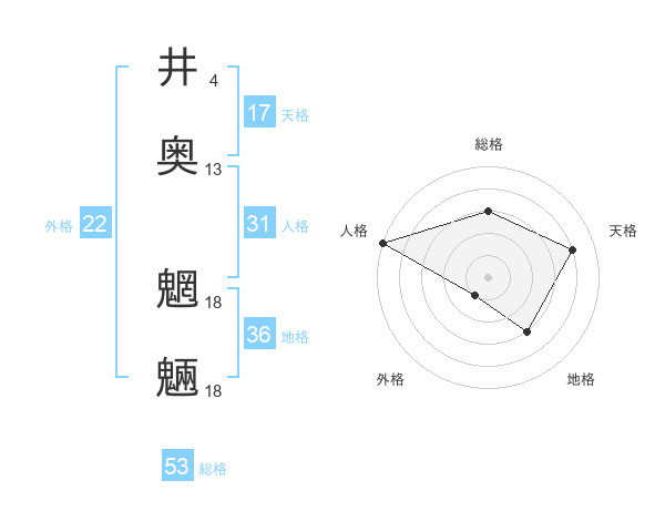 井奥 魍魎さんを姓名の画数から五運を鑑定