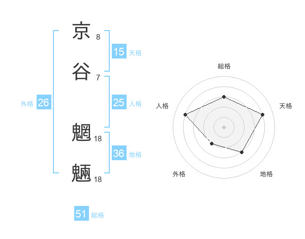 京谷 魍魎さんを姓名の画数から五運を鑑定