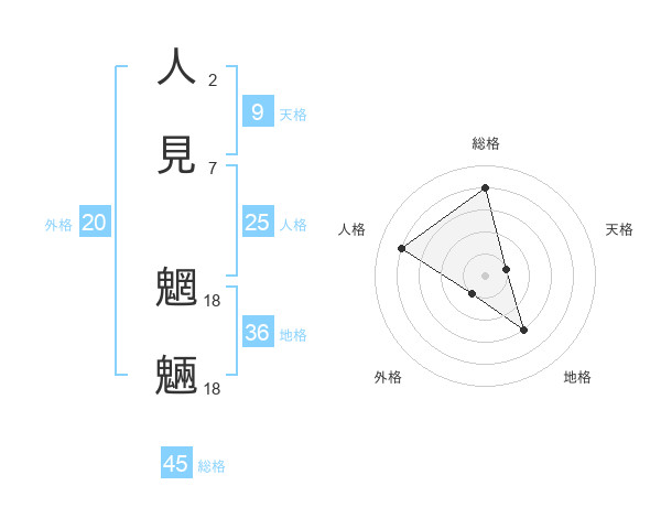 人見 魍魎さんの総格は45画の4点!