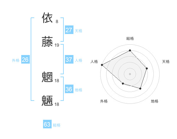 依藤 魍魎さんを姓名の画数から五運を鑑定