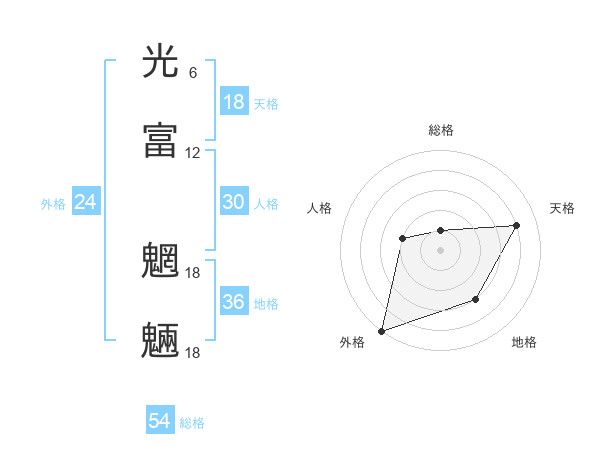 光富 魍魎さんの総格は54画の1点!