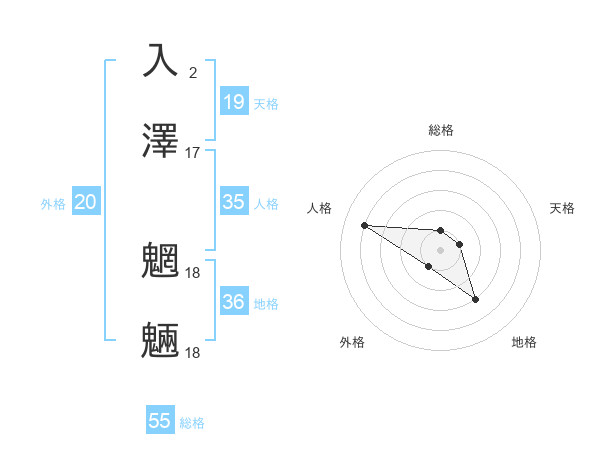入澤 魍魎さんの総格は55画の1点!