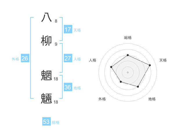 八柳 魍魎さんを姓名の画数から五運を鑑定