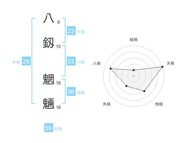 八釼 魍魎さんの天格は23画の5点!