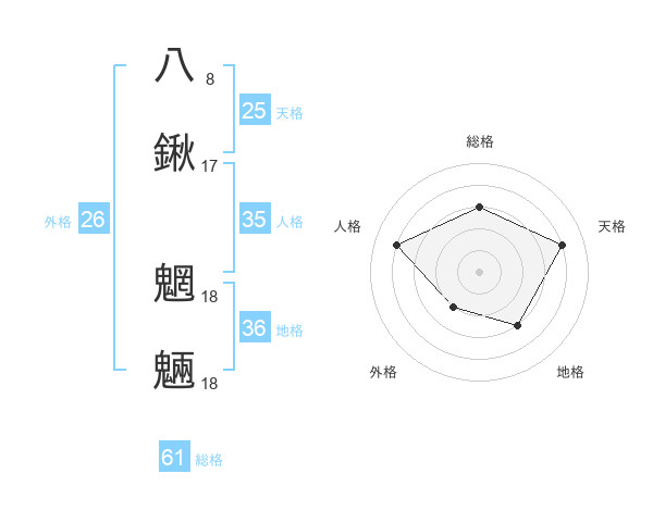 八鍬 魍魎さんの総格は61画の3点!