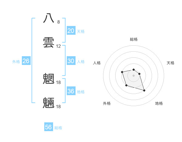 八雲 魍魎さんの総格は56画の1点!