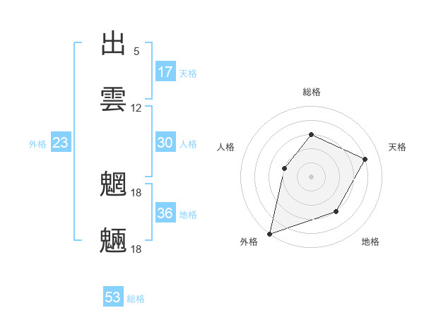 出雲 魍魎さんを姓名の画数から五運を鑑定