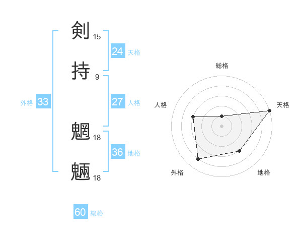 剣持 魍魎さんを姓名の画数から五運を鑑定