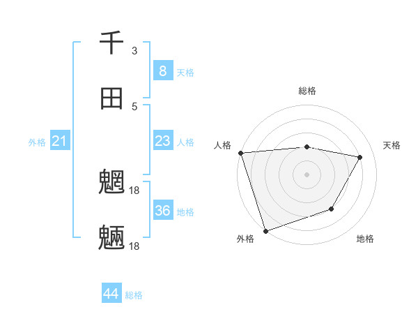 千田 魍魎さんの天格は8画の4点!