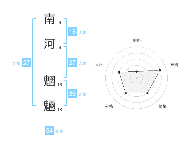 南河 魍魎さんの総格は54画の1点!