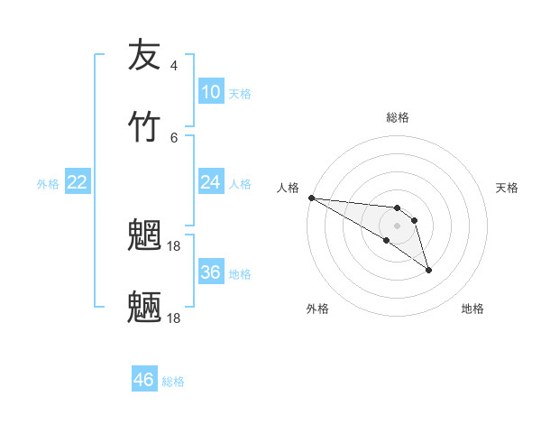 友竹 魍魎さんを姓名の画数から五運を鑑定