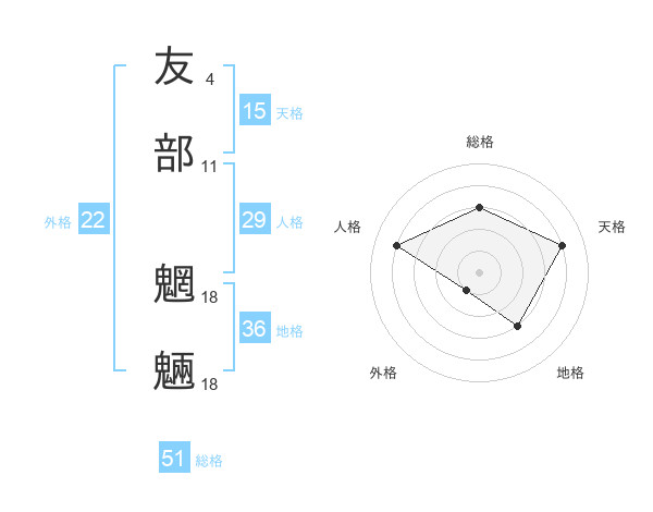 友部 魍魎さんを姓名の画数から五運を鑑定