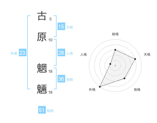 古原 魍魎さんの総格は51画の3点!