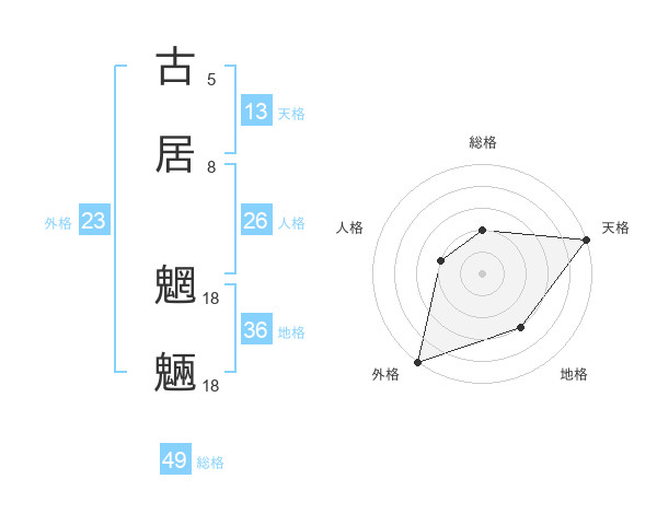 古居 魍魎さんの天格は13画の5点!
