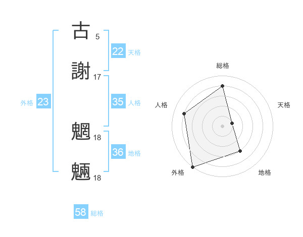 古謝 魍魎さんを姓名の画数から五運を鑑定