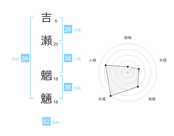吉瀬 魍魎さんを姓名の画数から五運を鑑定