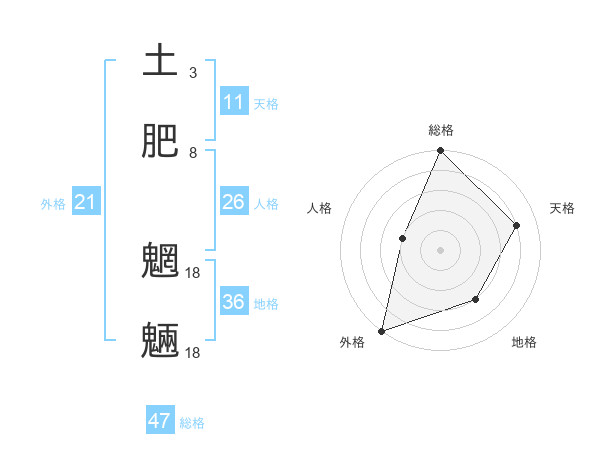 土肥 魍魎さんの総格は47画の5点!