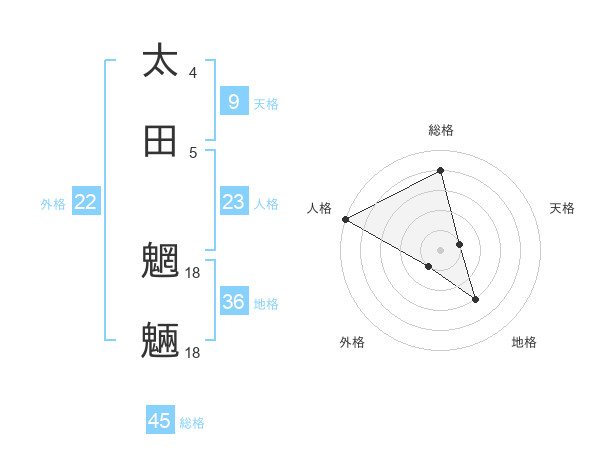 太田 魍魎さんを姓名の画数から五運を鑑定