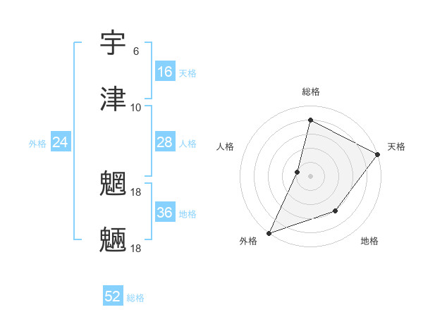 宇津 魍魎さんを姓名の画数から五運を鑑定