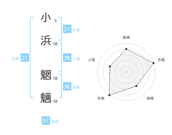 小浜 魍魎さんを姓名の画数から五運を鑑定