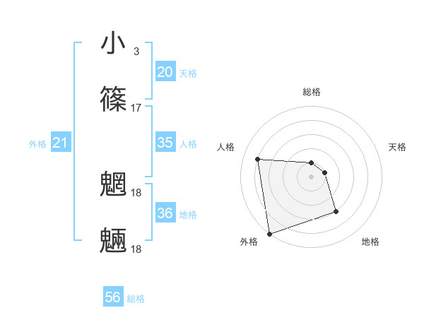 小篠 魍魎さんを姓名の画数から五運を鑑定