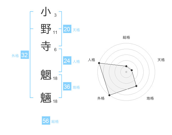 小野寺 魍魎さんを姓名の画数から五運を鑑定