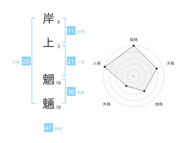 岸上 魍魎さんを姓名の画数から五運を鑑定