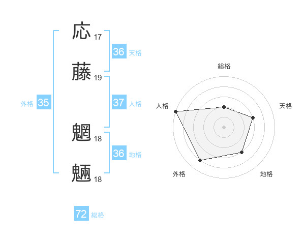 応藤 魍魎さんの総格は72画の2点!