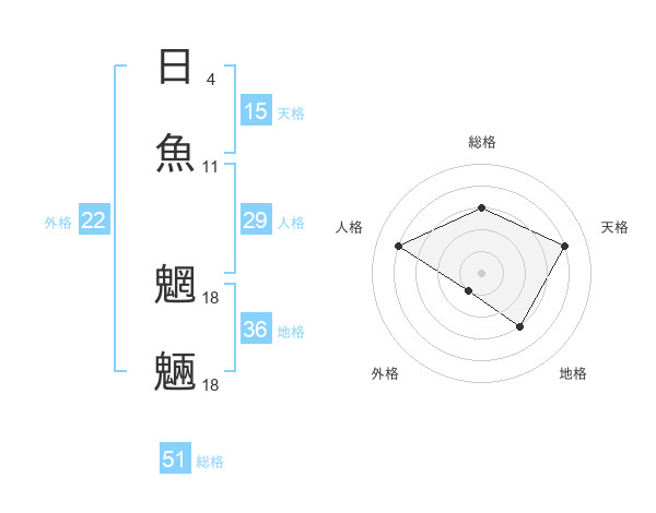 日魚 魍魎さんの総格は51画の3点!