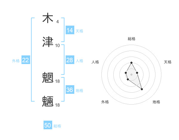 木津 魍魎さんの総格は50画の2点!