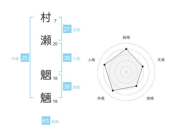 村瀬 魍魎さんの総格は63画の4点!