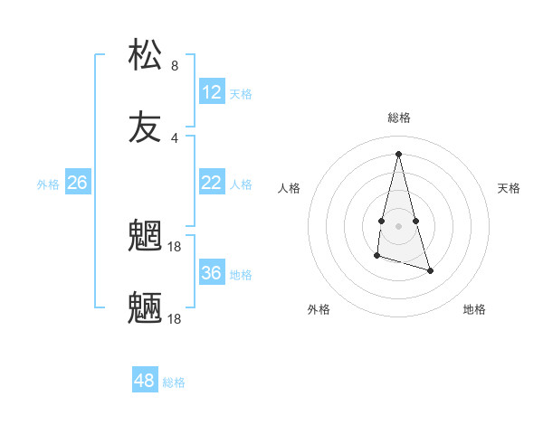 松友 魍魎さんの総格は48画の4点!